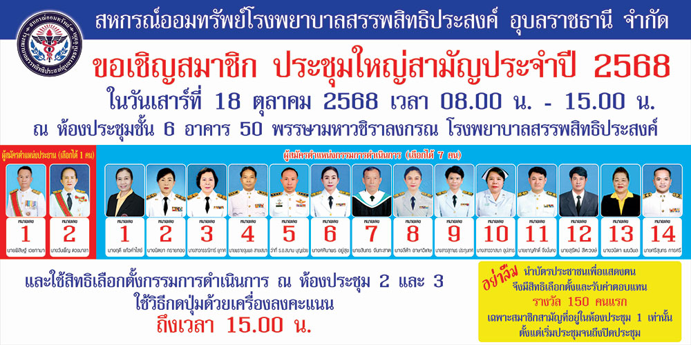 เว็ปไซต์นี้ใช้คุกกี้เพื่อวัตถุประสงค์ในการปรับปรุงประสบการณ์ของผู้ใช้ และช่วยให้สหกรณ์ออมทรัพย์โรงพยาบาลสรรพสิทธิประสงค์ อุบลราชธานี จำกัด สามารถพัฒนาคุณภาพของเว็ปไซต์ให้ดียิ่งขึ้น ท่านสมาชิกสามารถศึกษารายละเอียดเพิ่มเติมที่ นโยบายคุกกี้