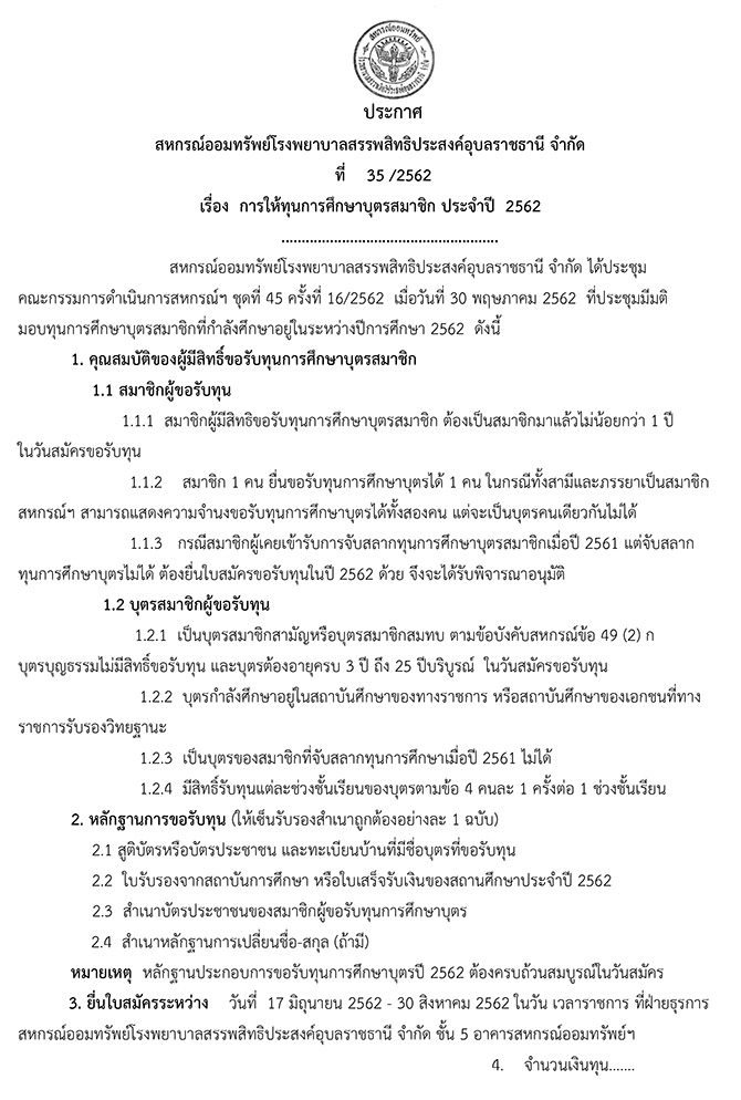 ดาวน์โหลดใบสมัครทุนการศึกษาบุตรสมาชิกประจำปี 2562